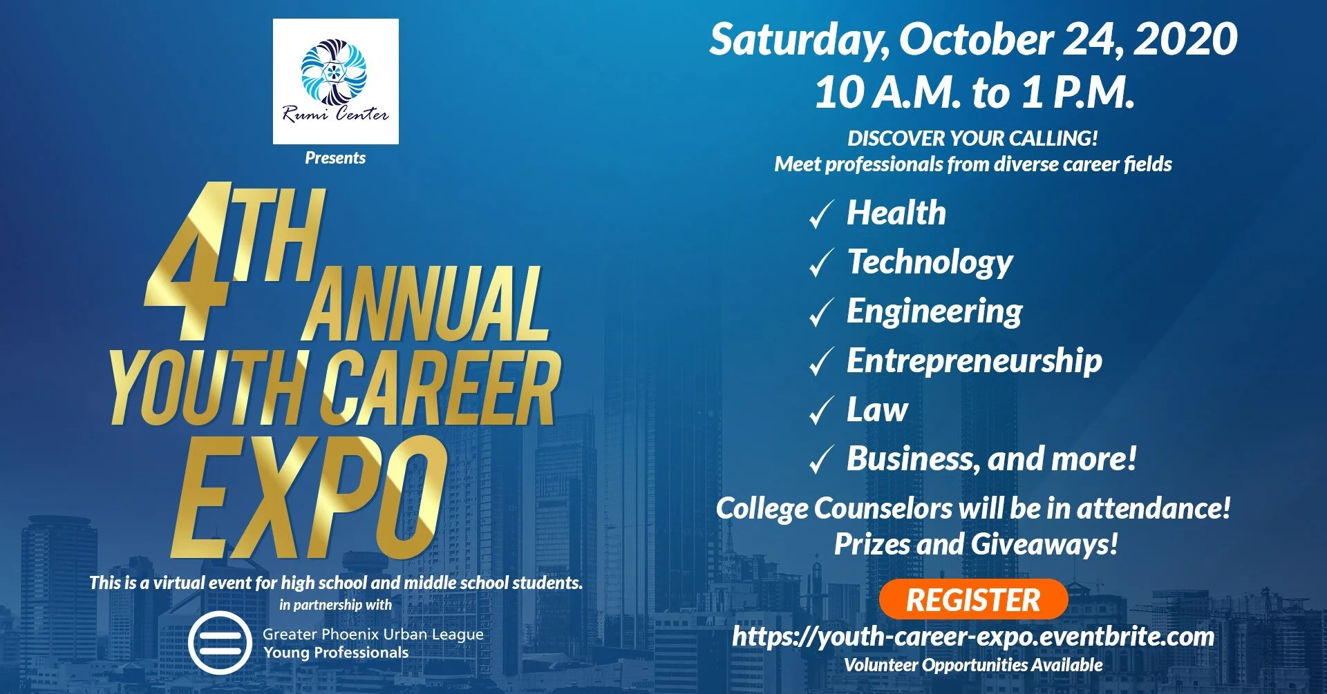 The Rumi Center in partnership with Greater Phoenix Urban League Young Professionals are excited to present Rumi Center's 4th Annual Youth Career Expo!