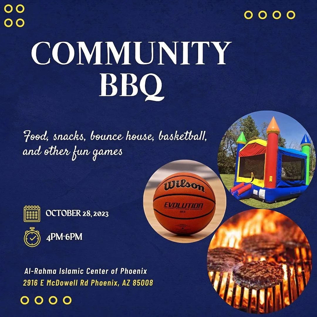 Masjid Al-Rahma is having a 2 part event this Saturday BBQ 4-6pm and a youth talk 6-7:30pm