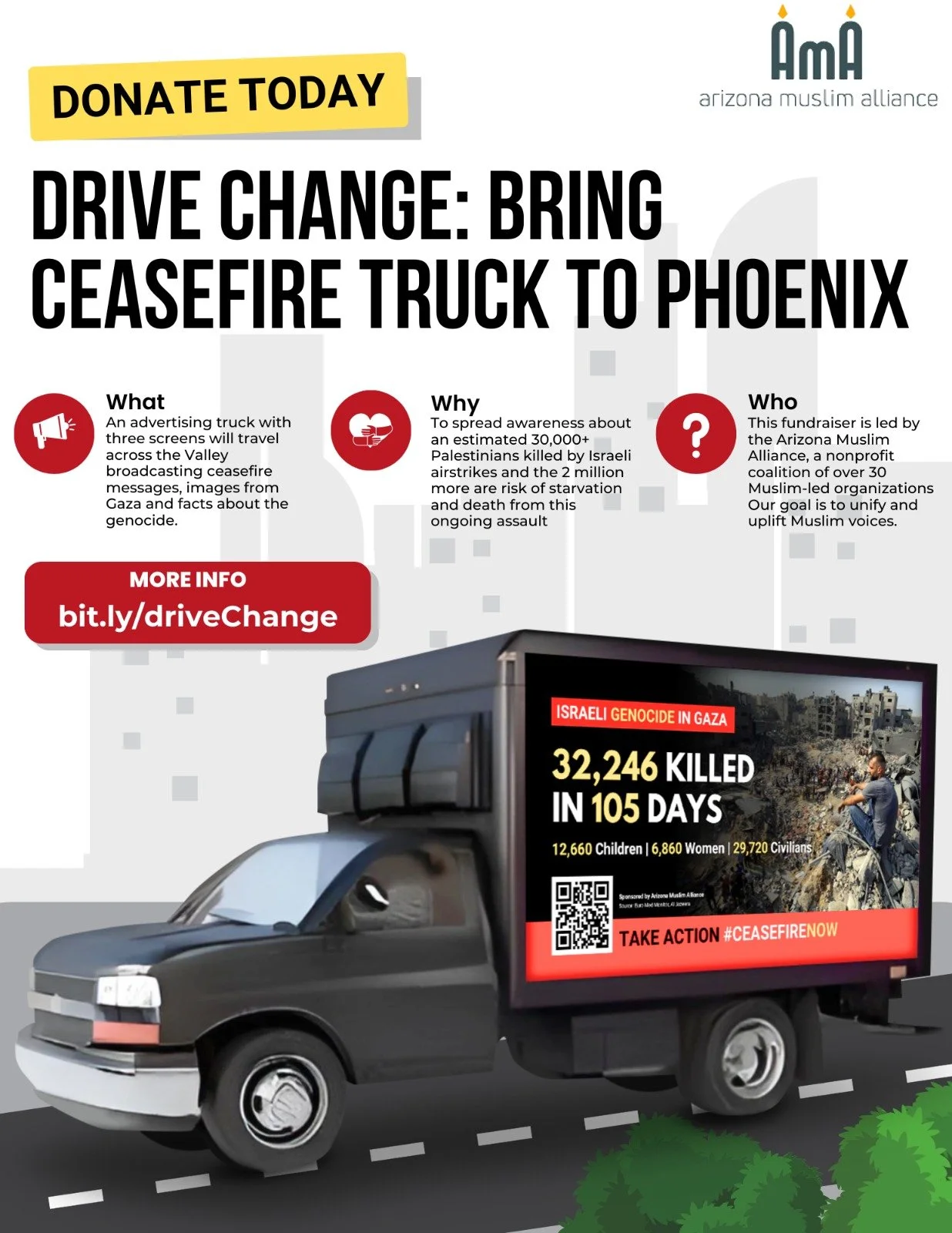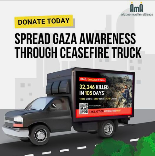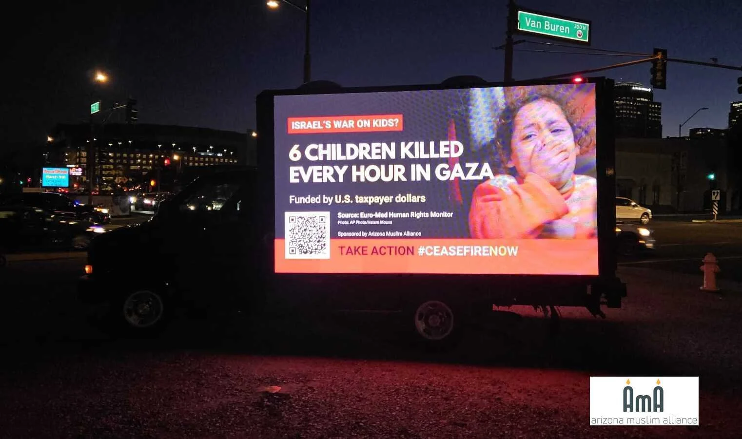 Update on the mobile digital billboard campaign happening right now to bring Gaza awareness to Phoenix. We're ready to sign the contract, but we need your help to make it happen this week, insha'Allah.