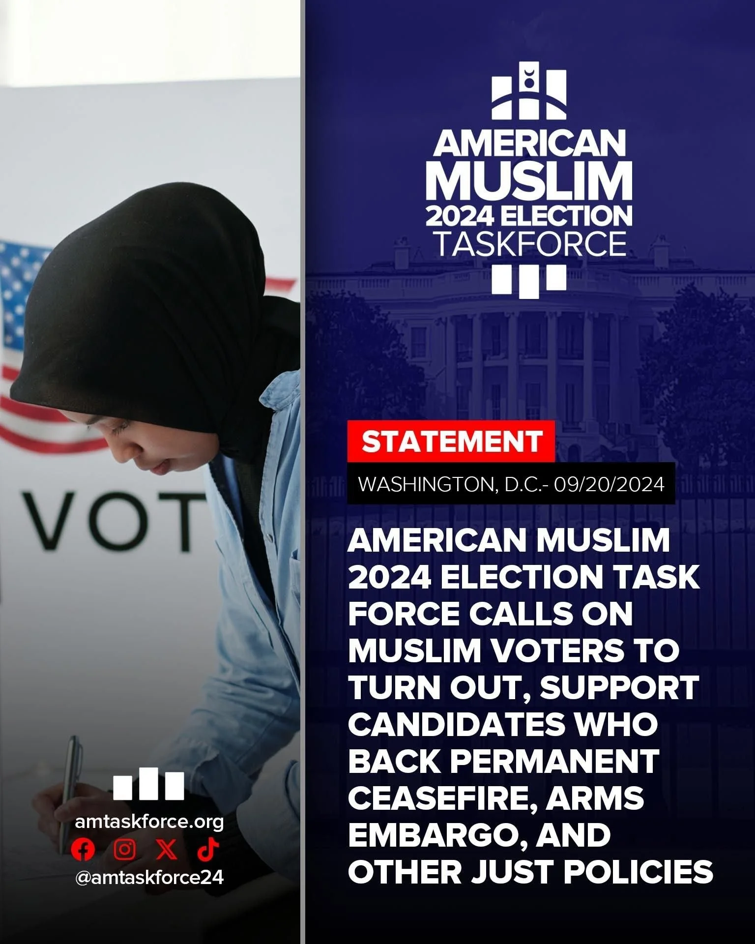 🚨 BREAKING: Endorsement Announcement: American Muslim 2024 Election Task Force Urges Voter Mobilization for Justice!