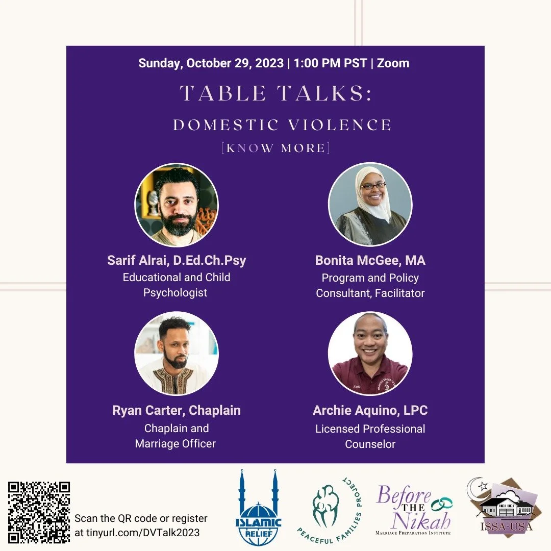 Before the Nikah - Domestic Violence 2023 View fullsize Sunday, October 29, 2023 at 1 PMRegister: https://www.tinyurl.com/DVTalk2023 Asma NooruddinJuly 13, 2023Comment Facebook0 Twitter LinkedIn0 Reddit Tumblr 0 Likes
