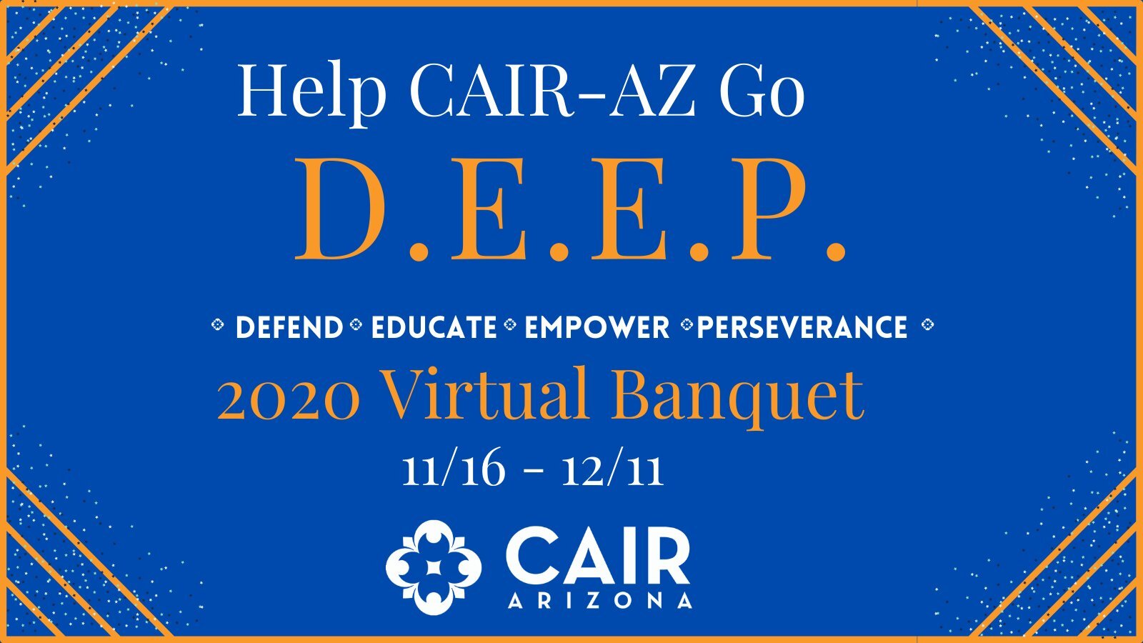 On Monday, November 16, 2020 starts the first week of our banquet!! Make sure to follow us on all of our social media platforms so you do not miss anything!! If you would like to #HelpCAIRAZgoDEEP you can donate here: https://cair-az.org/donate/ or http://launchgood.com/godeep