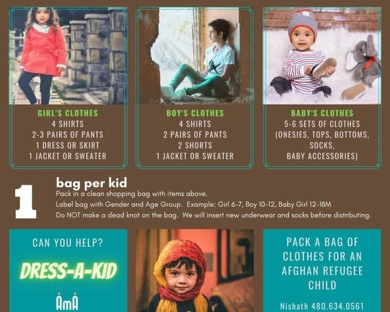 Hundreds of Afghan evacuees have arrived in Phoenix, many in hotels until housing is available. We'd love to have your kids' clothes and get them to the families as soon as possible. However, our volunteers are not able to keep up with the unprecedented demand. We need your clothes and your packing hands! Can you take another step to help us?