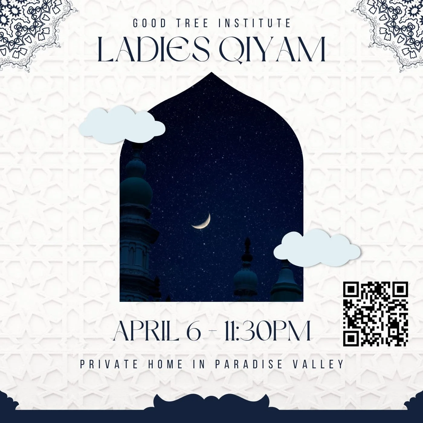 Good Tree - Ladies Qiyam 2024 View fullsize Saturday, March 6, 2024 at 11:30 PMRSVP: https://givebutter.com/DfDDID Asma NooruddinOctober 22, 2023Comment Facebook0 Twitter LinkedIn0 Reddit Tumblr 0 Likes