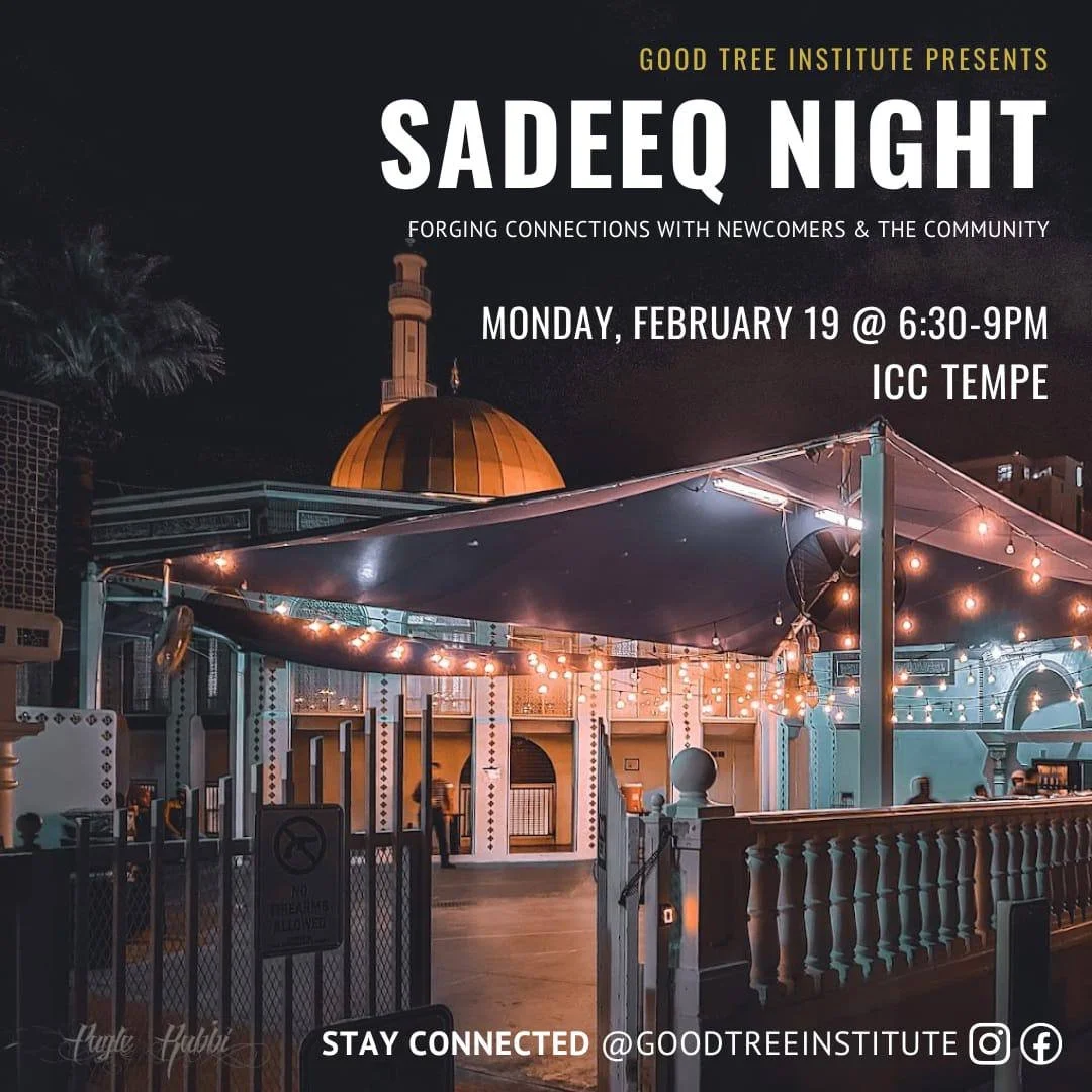 Good Tree - Sadeeq Night 2024 View fullsize Monday, February 19, 2024 from 6:30 PM till 9 PMDirection: 131 E 6th St, Tempe, AZ 85281 Asma NooruddinOctober 16, 2023Comment Facebook0 Twitter LinkedIn0 Reddit Tumblr 0 Likes