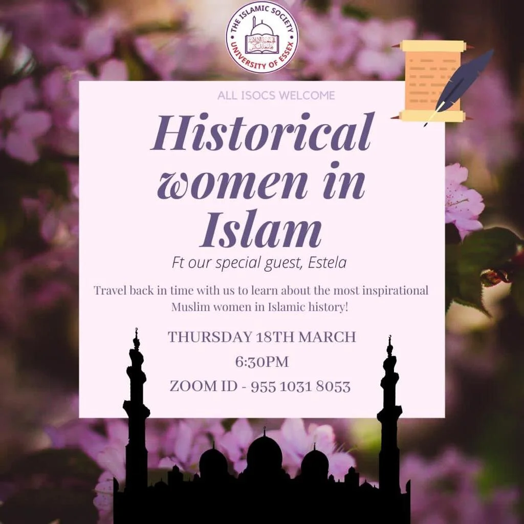 Historical Women In Islam View fullsize Historical Women In Islam by Sister EstelaThursday, March 18, 2021 at 11:30 AM (Arizona Time)Zoom ID: 955 1031 8053 Asma NooruddinMarch 11, 2021Comment Facebook0 Twitter LinkedIn0 Reddit Tumblr 0 Likes