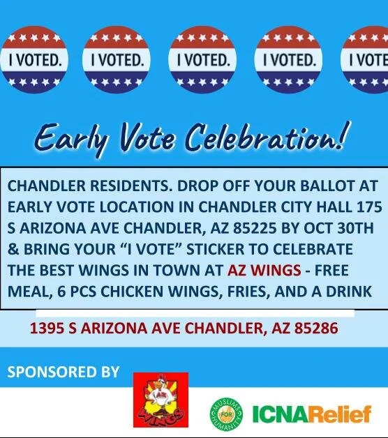 Voting Center: Chandler City Hall, 175 S. Arizona Ave. Chandler, AZ 85225