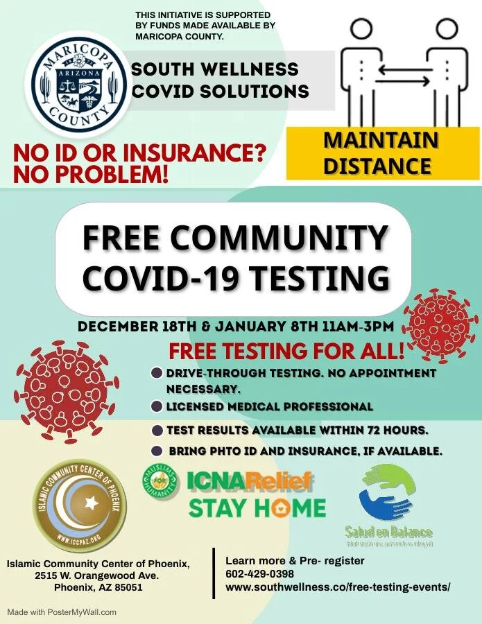 Upcoming Testing in Maricopa County, AZ: https://www.southwellness.com/free-testing-events/