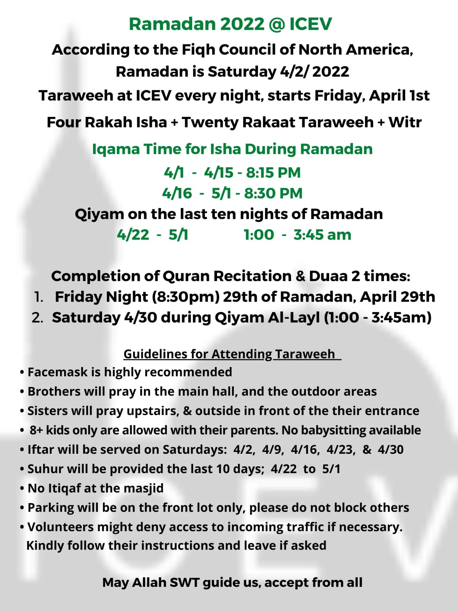 The first day of Ramadan is on Saturday April 2, 2022 and Eid-ul Fitr tentatively is on May 2, 2022