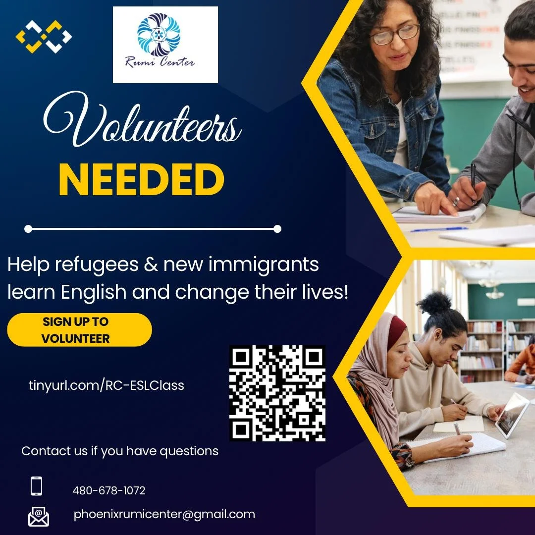 Rumi Center - Volunteer Needed View fullsize Volunteer Sign Up: https://tinyurl.com/RC-ESLClass Asma NooruddinMay 10, 2024Comment Facebook0 Twitter LinkedIn0 Reddit Tumblr 0 Likes