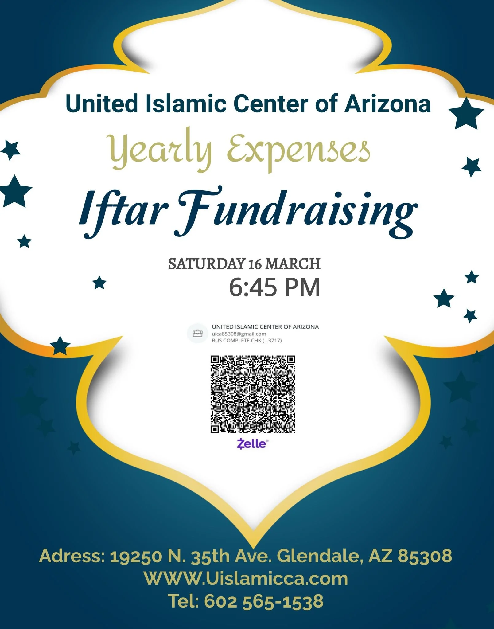UICA - Iftar Fundraising 2024 View fullsize Saturday, March 16, 2024 at 6:45 PMDirection: 19250 N 35th Ave, Glendale, AZ 85308 Asma NooruddinOctober 15, 2023Comment Facebook0 Twitter LinkedIn0 Reddit Tumblr 0 Likes