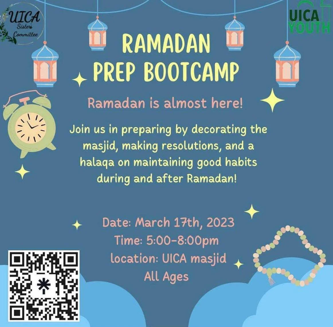 UICA - Ramadan Prep Bootcamp 2023 View fullsize Friday, March 17, 2023 from 5 PM till 8 PMDirection: 19250 N 35th Ave, Glendale, AZ 85308 Asma NooruddinJanuary 28, 2023Comment Facebook0 Twitter LinkedIn0 Reddit Tumblr 0 Likes