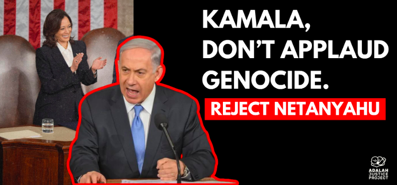 Vice President Harris: Don't Applaud Genocide. Reject Netanyahu. 2024 View fullsize Sign the Petition: https://actionnetwork.org/petitions/vice-president-harris-dont-applaud-genocide-reject-the-speech Asma NooruddinJanuary 22, 2024Comment Facebook0 Twitter LinkedIn0 Reddit Tumblr 0 Likes