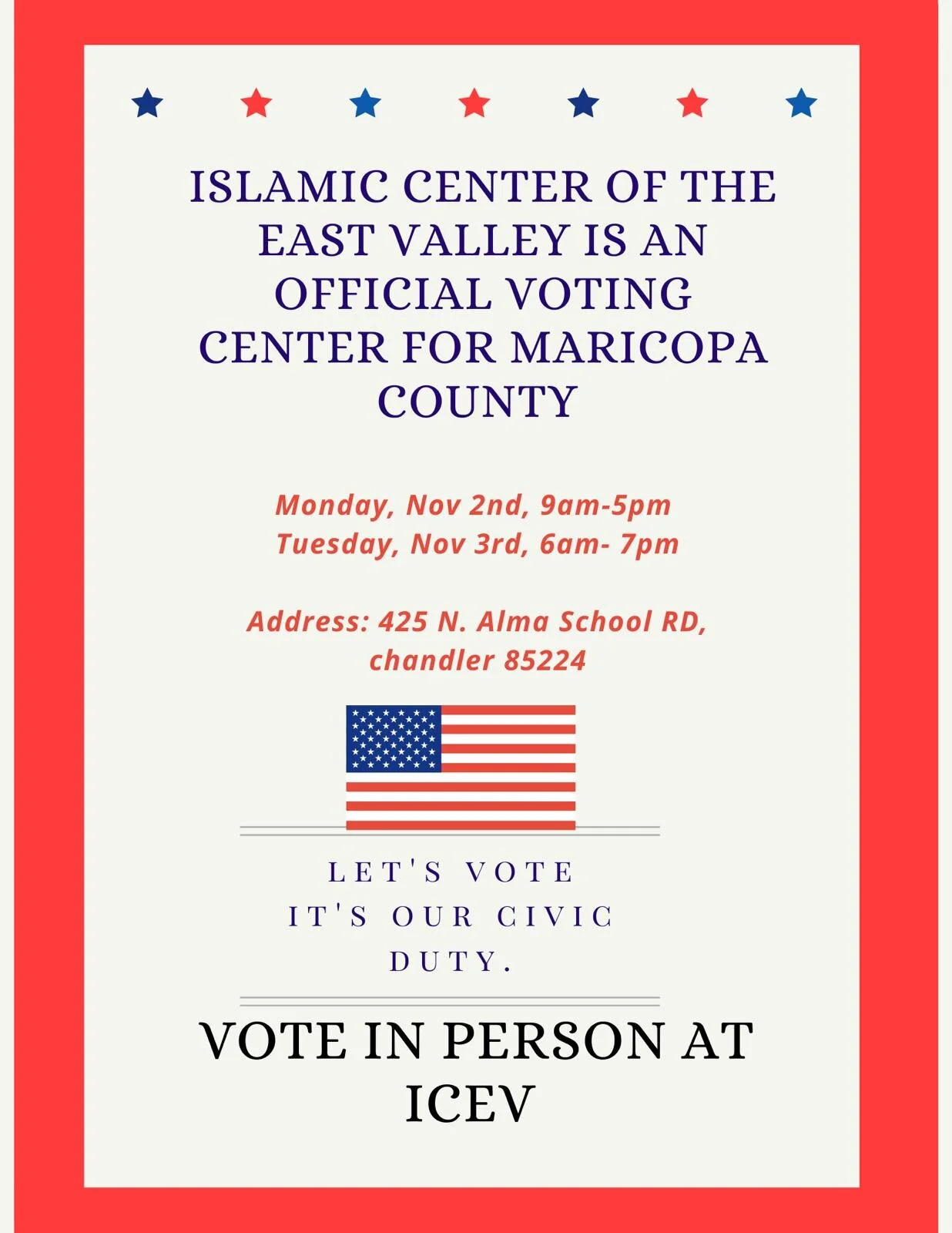 Vote In Person At ICEV View fullsize For more info & if you’d like to volunteer text 4806288971 Asma NooruddinOctober 16, 2020Comment Facebook0 Twitter LinkedIn0 Reddit Tumblr 0 Likes
