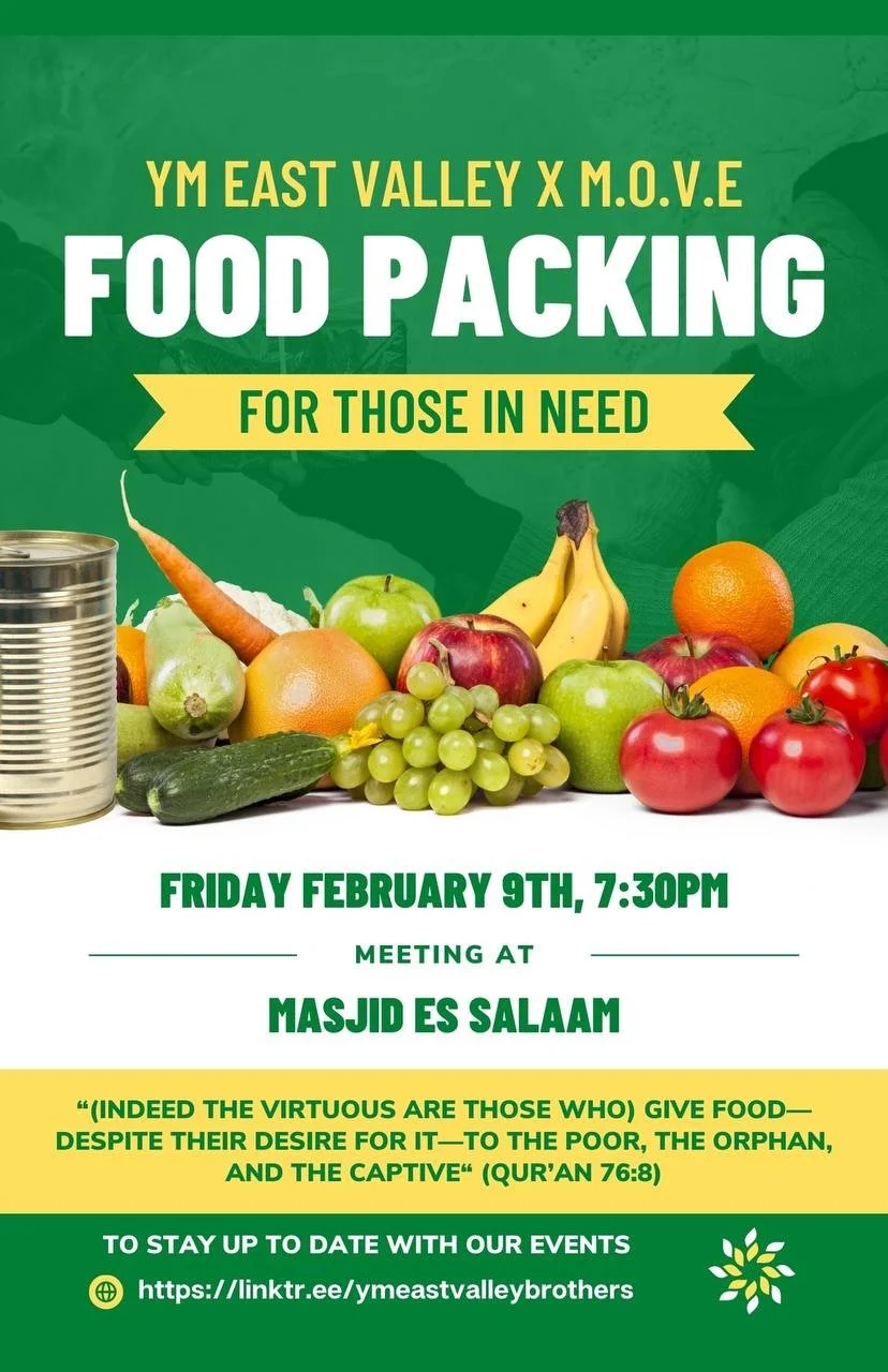 YM-MOVE - Food Packing 2024 View fullsize Friday, February 9, 2024 at 7:30 PMDirection: 1071 N Alma School Rd, Chandler, AZ 85224 Asma NooruddinOctober 9, 2023Comment Facebook0 Twitter LinkedIn0 Reddit Tumblr 0 Likes