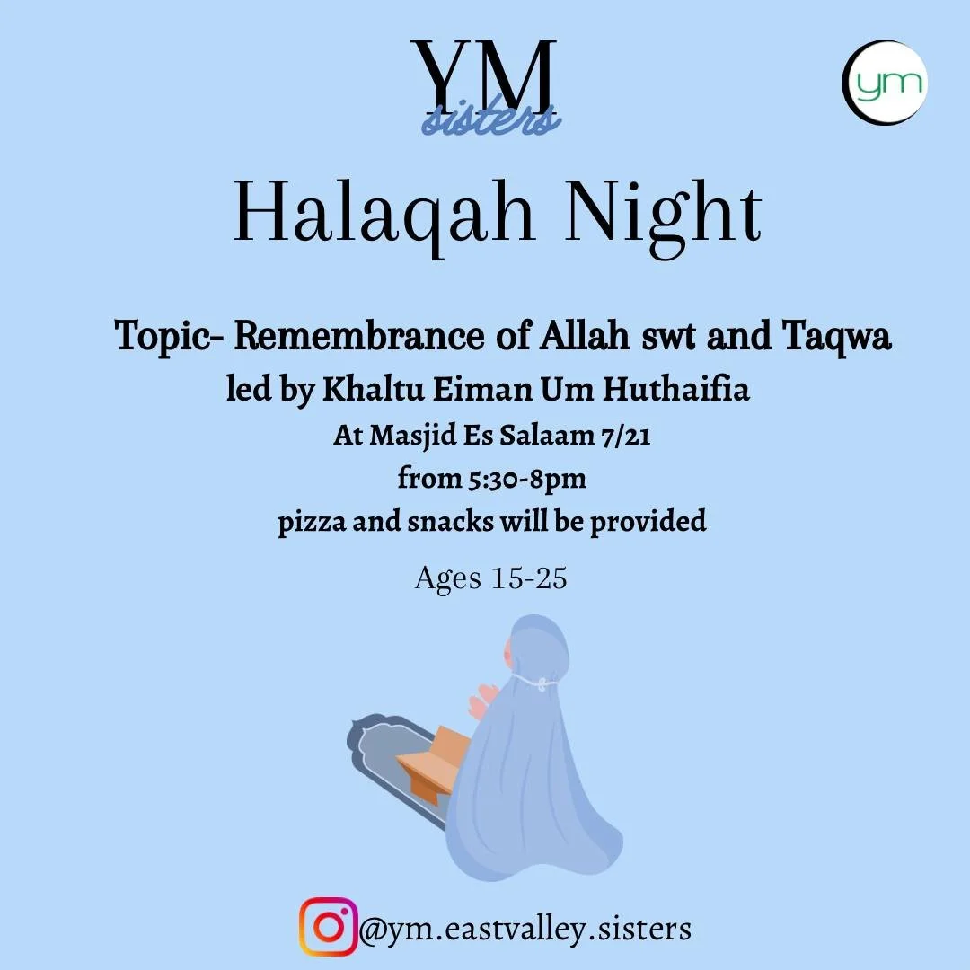 YM Sisters - Halaqah Night 2023 View fullsize Friday, July 21, 2023 from 5:30 PM till 8 PMDirection: 1071 N Alma School Rd, Chandler, AZ 85224 Asma NooruddinMarch 21, 2023Comment Facebook0 Twitter LinkedIn0 Reddit Tumblr 0 Likes