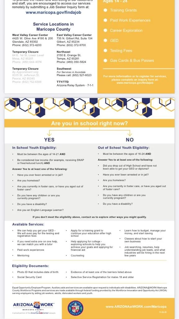 Youth Service Program View fullsize View fullsize https://www.maricopa.gov/5226/Find-A-Job-Through-Our-Career-Services Asma NooruddinFebruary 4, 2021Comment Facebook0 Twitter LinkedIn0 Reddit Tumblr 0 Likes