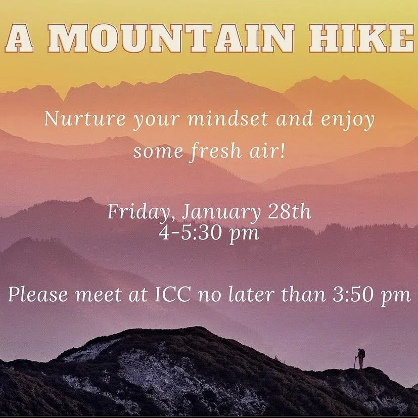A Mountain Hike Friday, January 28, 2022 4:00 PM 5:30 PM 16:00 17:30 Google Calendar ICS View fullsize Friday, January 28, 2022 from 4 PM till 5:30 PMMeeting Point: 131 E 6th St, Tempe, AZ 85281