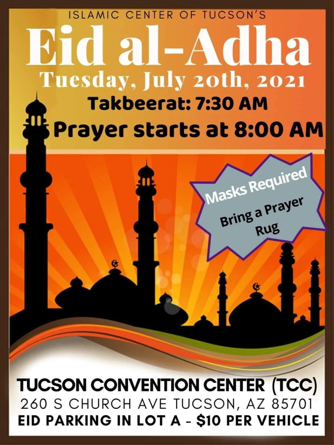 Tuesday, July 20, 2021, Takbeerat 7:30 AM and Salat at 8 AM,