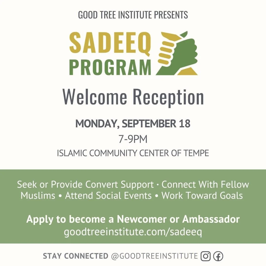 Good Tree - Sadeeq Welcome Reception 2023 Monday, September 18, 2023 7:00 PM 9:00 PM 19:00 21:00 Google Calendar ICS View fullsize Monday, September 18, 2023 from 7 PM till 9 PMDirection: ICC Tempe 131 E 6th St, Tempe, AZ 85281
