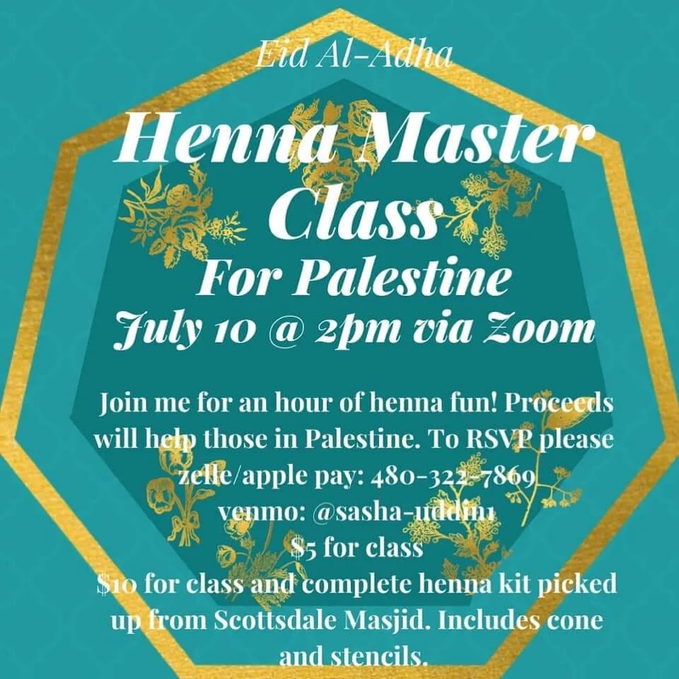 $10 for class and complete henna kit picked up from Scottsdale masjid, includes cone and stencils