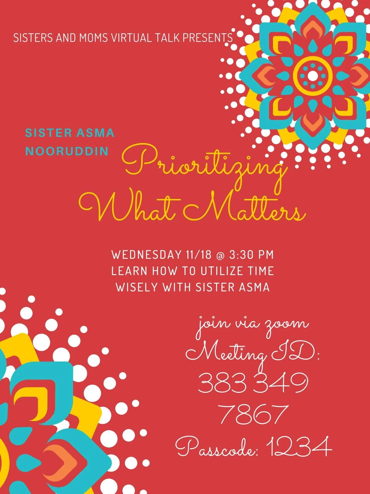 🌹Salam beautiful ladies, remember to join us Wednesday 11/18 👉🏿 3:30 PM. MashaAllah we’re honored to have sister Asma Nooruddin. Invite your friends as well.