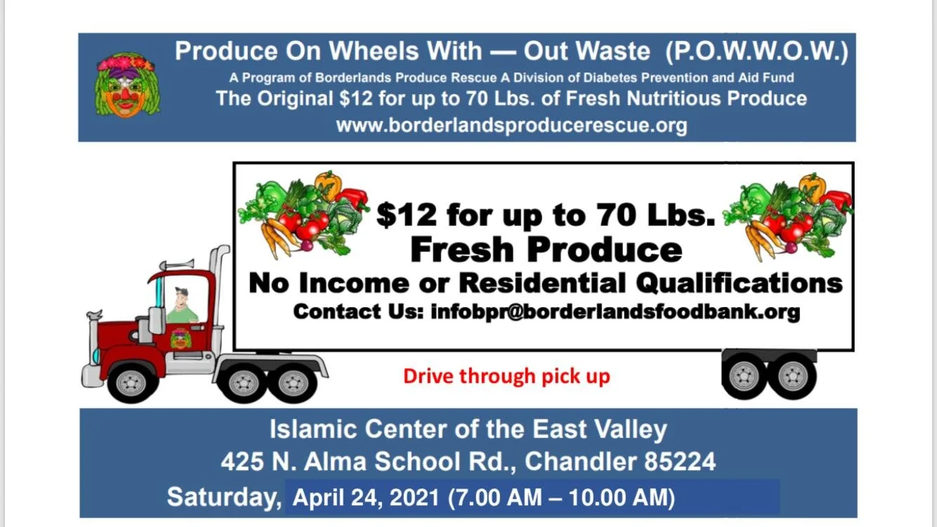 Get your produce at ICEV from Saturday 12/19; mashaAllah $12 for up to 70 lbs. Drive through with mask on while keeping S.D. We’ll load the box into your car. It’s open to public from 8 am until 11 am. We pray at the Masjed Salat Al_Fajer @ 6:30am if you can volunteer after salat to help set up & prepare for the event we’d really appreciate it 🙏🏽