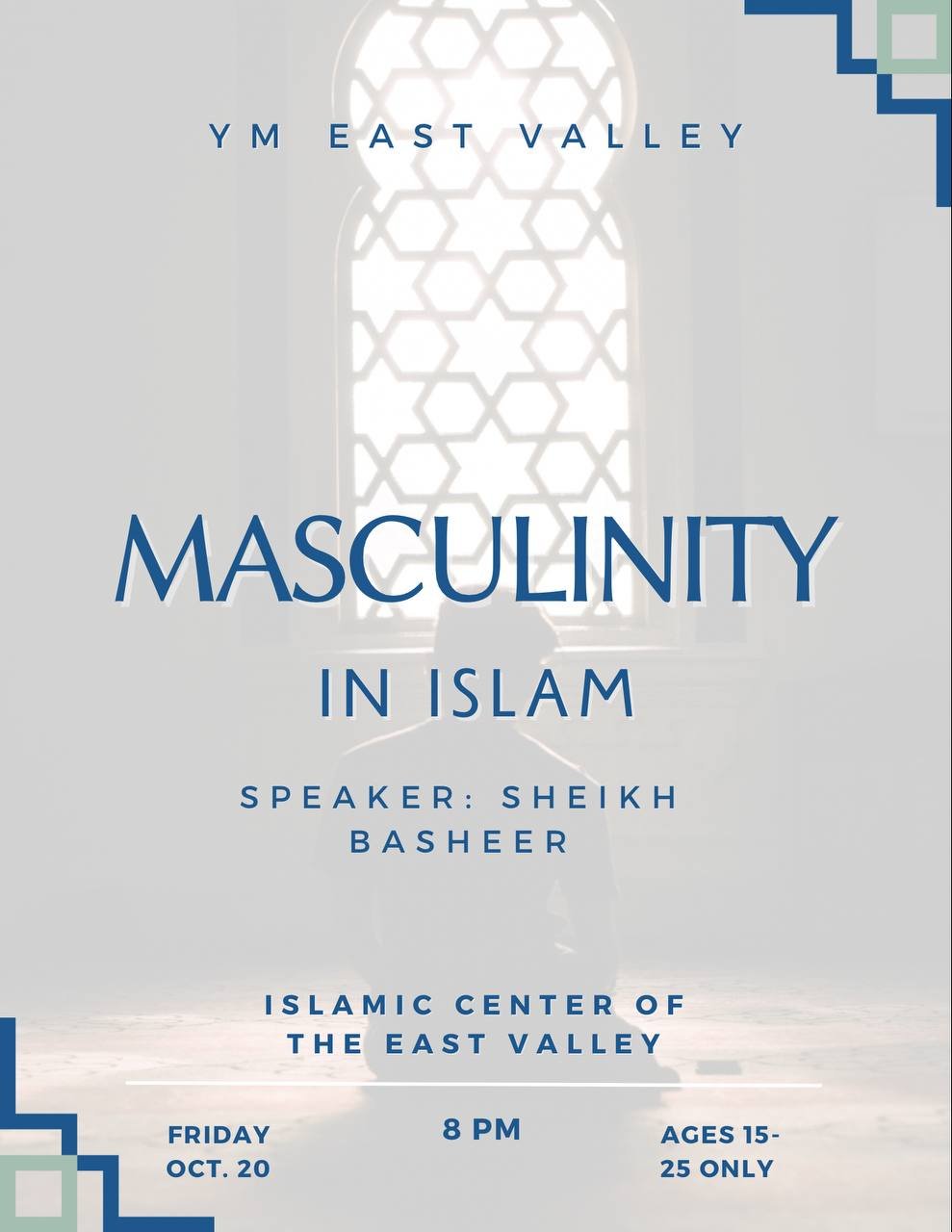 YM East Valley - Masculinity 2023 Friday, October 20, 2023 8:00 PM 9:00 PM 20:00 21:00 Google Calendar ICS View fullsize Friday, October 20, 2023 at 8 PMDirection: 425 N Alma School Rd, Chandler, AZ 85224