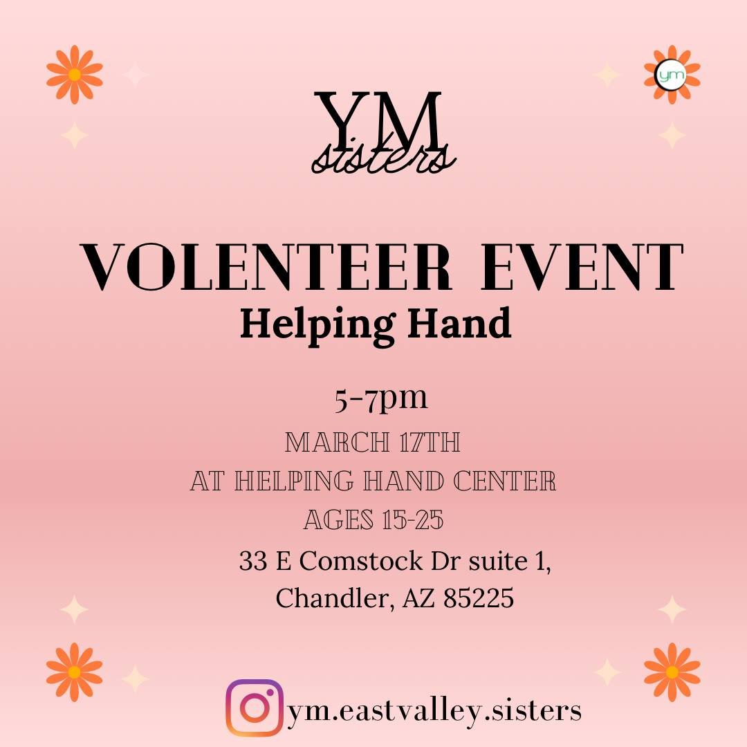 YM Sisters - Volunteer Event Friday, March 17, 2023 5:00 PM 7:00 PM 17:00 19:00 Google Calendar ICS View fullsize Friday, March 17, 2023 from 5 PM till 7 PMDirection: HHRD 33 E Comstock Dr Suite #1, Chandler, AZ 85225